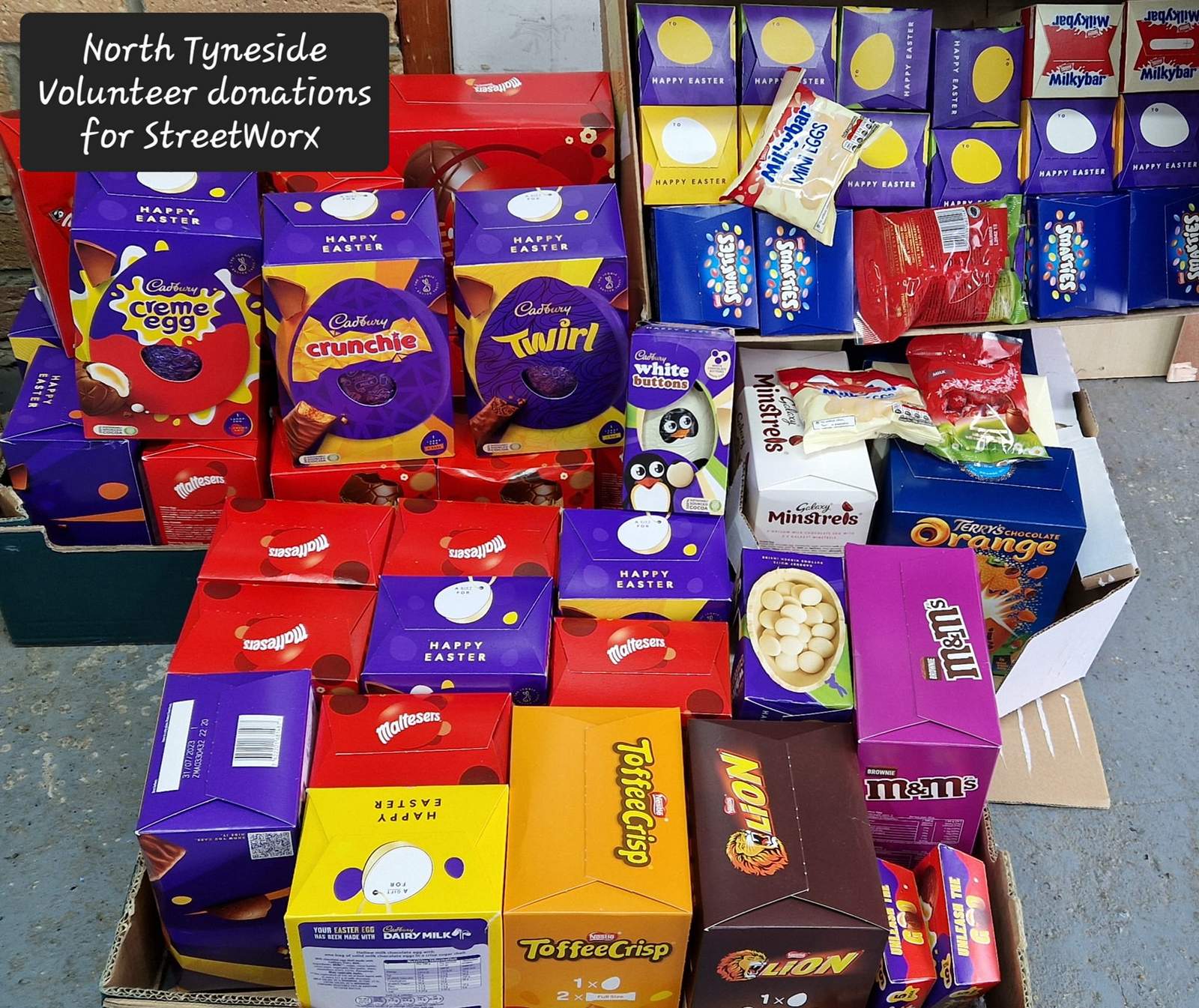 On Saturday 1st April, North Tyneside volunteers brought along Easter Eggs with their collected donations to gift to StreetWorx, a charity who supports the homeless in Newcastle City Centre on a Saturday night and Sunday morning thank you team xx