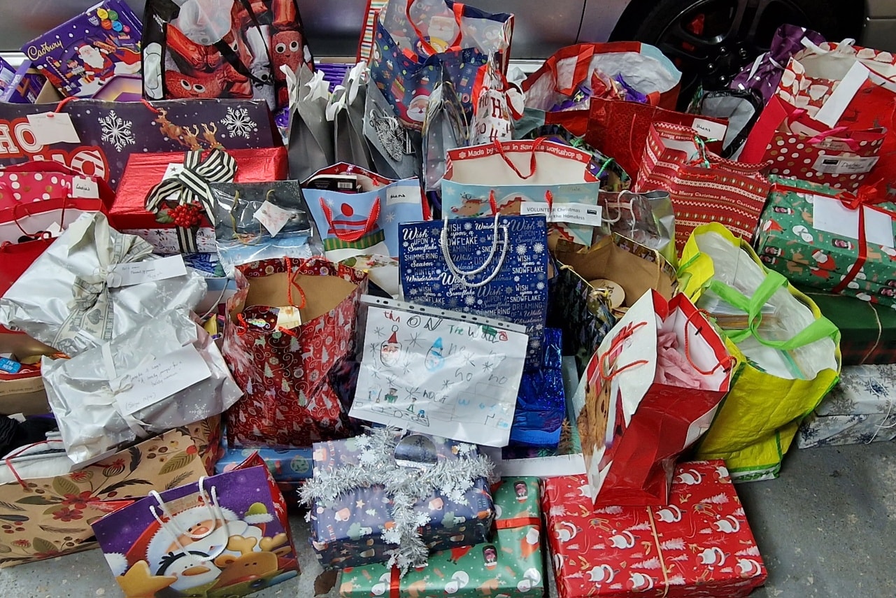 "Our army of Tin On A Wall volunteers,collect food donations every month for a number of charities and community groups, BUT in December, our volunteers went even further!!! They made up gifts for the Destiny StreetWorx Christmas Shoe Box/Gift Bag Appeal, for men, women and dogs. Giving the homeless a small gift at Christmas it shows that someone cares. Our volunteers gifted over 60 BOXES / BAGS! I was lucky enough to go out with the charity on 23rd December to give these out to the homeless.