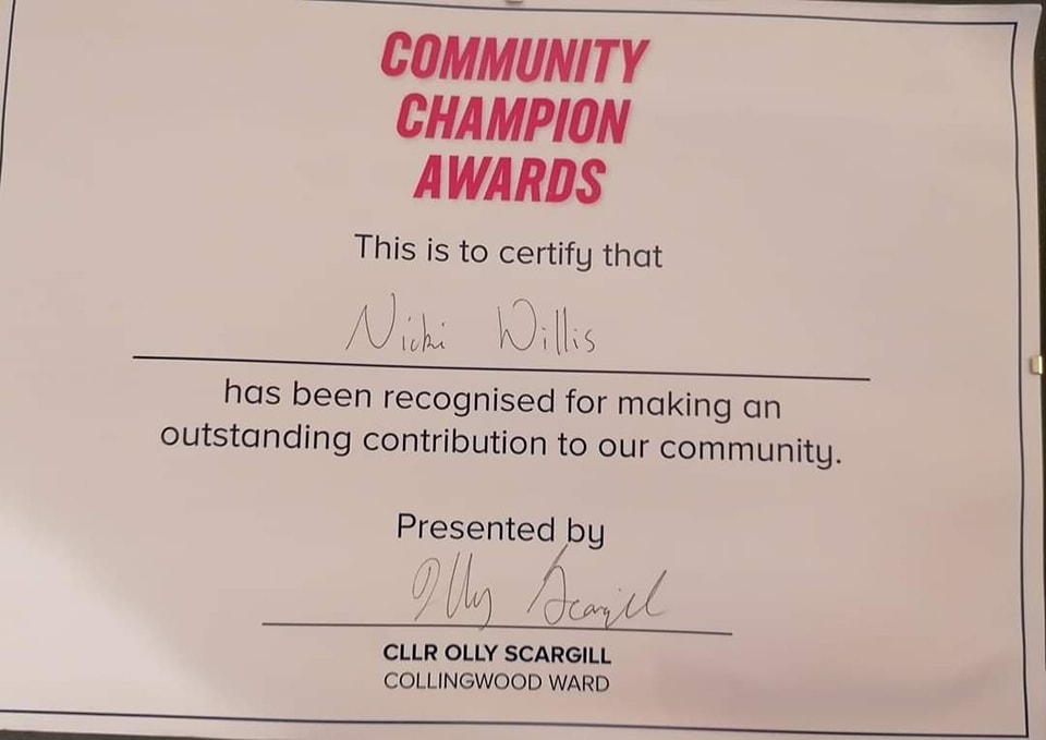 A massive congratulations to our gorgeous long-term volunteer Nicki who was awarded on Saturday with a Community Champion Award by Councillor Scargill. Very well deserved Nicki, you've been such a massive constant rock of our campaign, always going the extra mile