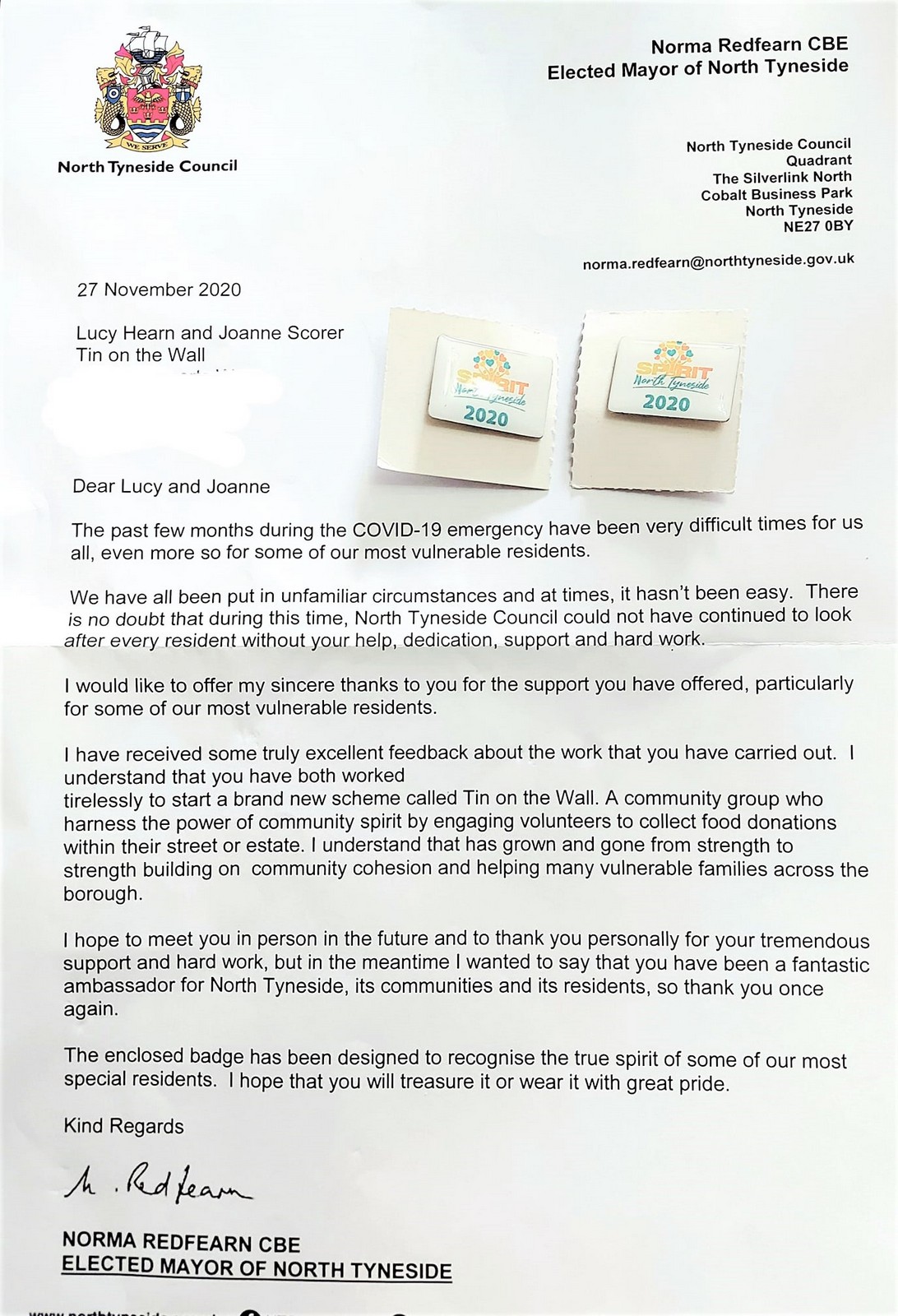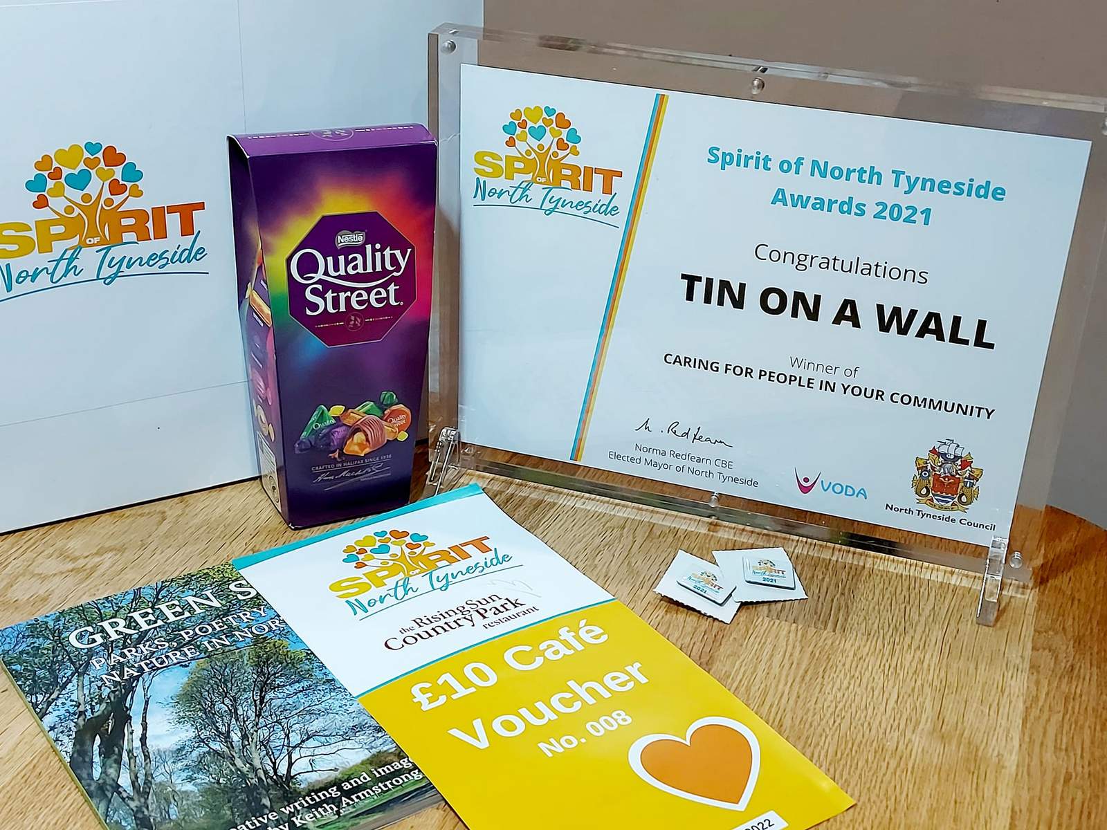 Tin On A Wall has been awarded Spirit of North Tyneside Award 2021 for "Caring for people in your community". The award was presented by Robin Fry the Chief Executive of VODA. This is our second Spirit of North Tyneside Award, the last was for 2020. Jessica Dickinson, Customer First Officer from North Tyneside Council said we were nominated because of all the wonderful work we have done.