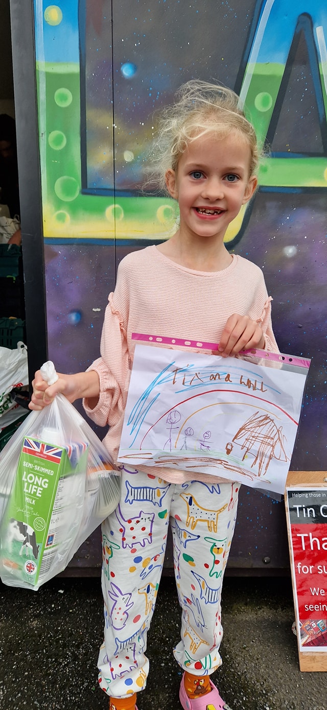 Another thank you to the little person from Valley Gardens who always leaves a beautiful picture with their donations. See picture above. I love my Christmas picture of Santa throwing out tins of food to those catching below. This picture will be added to my growing collection of art pieces on my wall at work! Jo x